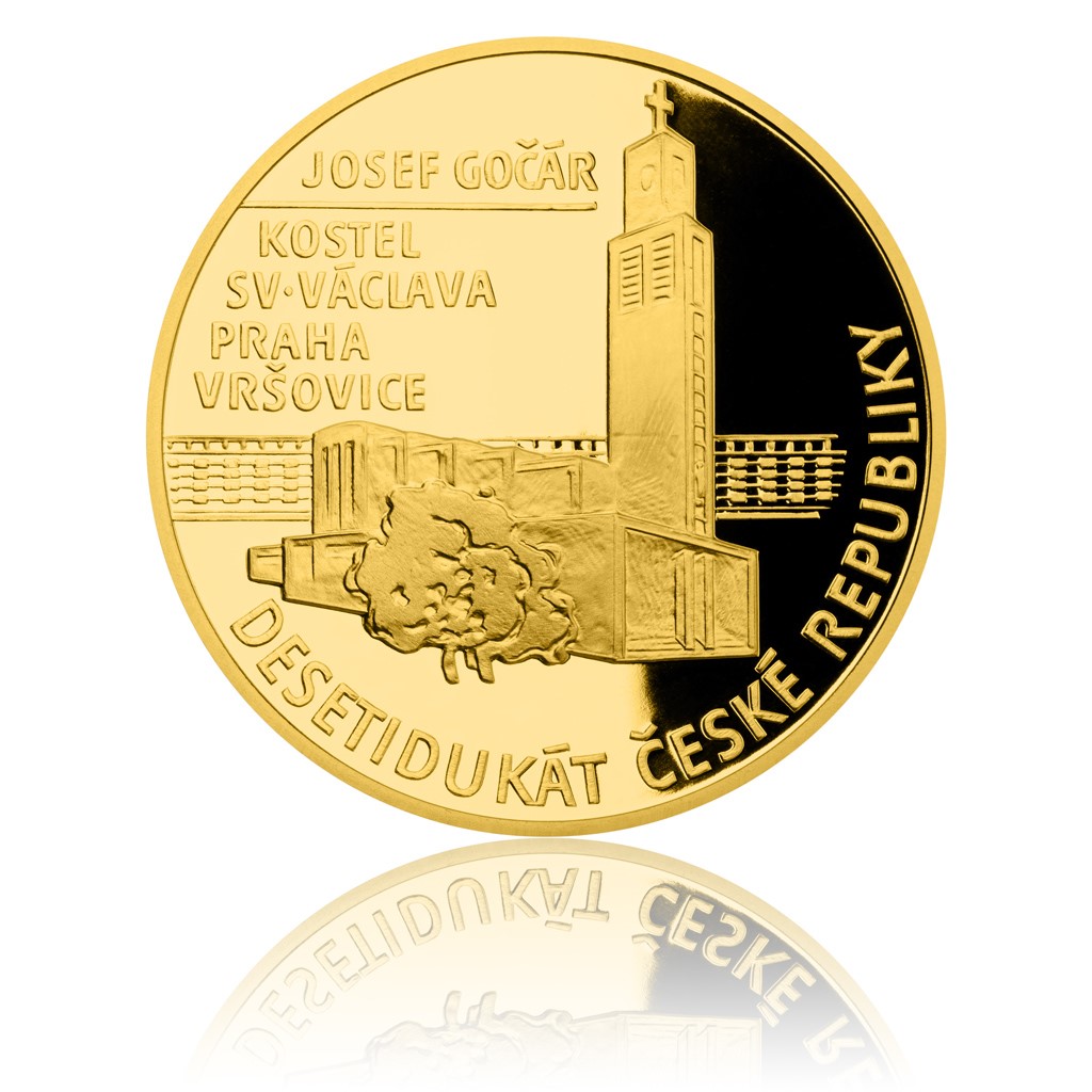 Averzní straně desetidukátu vévodí pohled na trojlodní kostel s hranolovitou věží a stupňovitou střechou. Doplňují ho nápisy JOSEF GOČÁR, KOSTEL SV. VÁCLAVA, PRAHA VRŠOVICE a DESETIDUKÁT ČESKÉ REPUBLIKY. Reverzní strana nese letopočet 2017, opis ČESKÁ KULTURA PRVNÍ REPUBLIKY a symbolické vyjádření čtyř prostředků uměleckého vyjádření – architektury, literatury, filmu a dramatu.