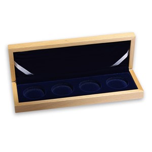 Do této luxusní sběratelské etue vyrobené ze světlého dřeva si můžete po čtveřicích ukládat nejrůznější ražby České mincovny v kapslích o průměru 39,4 mm (jedná se například o stříbrné medaile z cyklu Mandaly, jejichž průměr činí 34 mm).