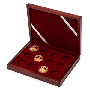 Ať už jste sběratel nebo investor, do této luxusní dřevěné etue tmavé barvy si můžete uložit dvanáct mincí či medailí České mincovny o hmotnosti jedné čtvrtiny trojské unce.