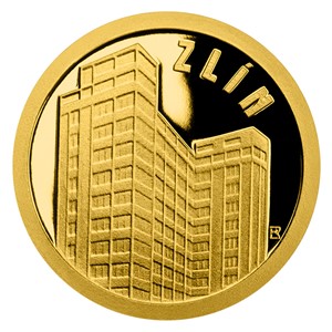 Gold coin Old pictures postcards Zlín - Baťa's Skyscraper proof