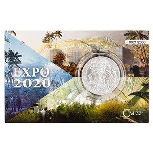 The latest variation of the Czech Lion, which was created on the occasion of the Expo 2020/2021 world fair, is a special edition of silver coin weighing one troy ounce (31.1 g). This bullion coin is embedded in a numbered commemorative packaging with a depiction of the science-fiction pavilion of the Czech Republic, which presents an oasis in the middle of the Dubai desert. A part of the mintage is available for purchase by visitors to the Expo in United Arab Emirates and a part is offered to our customers through e-shop.