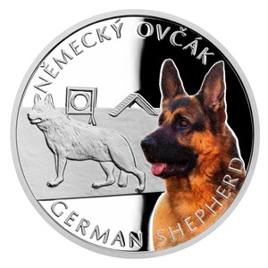 The twelve-part series of silver coins of the Czech Mint is dedicated to the most popular dog breeds. The first issue belongs to the German shepherd.