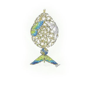 Touha létat provází lidstvo již od nepaměti. Bezstarostně se vznášet a užívat si divů světa však nebylo člověku dáno do vínku – proto nezbývá než se dojímat nad lehkostí žití, jíž byly obdařeny nejpůvabnější okřídlené bytosti – motýli. Pro jejich mimořádnou krásu jim lidé odjakživa přisuzovali významná místa v rozličných mytologiích. Motýl je však také ztělesněním přeměny, kdy se přes nepříliš poutavá stadia larvy a kukly vyvine v okouzlující stvoření. České mincovně se podařilo tuto symboliku vyjádřit prostřednictvím skutečného klenotu ve tvaru vejce s motivem motýlů, v němž je uložen další vzácný poklad – zlatá uncová medaile věnovaná odkazu velkého mistra-šperkaře Gustava Fabergého. I on dokázal z beztvarých plátů zlata stvořit umělecká díla nebývalé hodnoty, která se záhy stala synonymem přepychu.