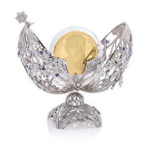 V jedinečném zimním klenotu, při jehož tvorbě jsme se inspirovali proslulými Fabergého vejci, se snoubí drahé kovy a drahé kameny. Půvabný je nejen navenek. Uvnitř schránky se ukrývá překvapení v podobě pamětní mince.