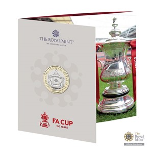 Pamětní mince britské mincovny The Royal Mint oslavuje 150. výročí nejstarší fotbalové klubové soutěže na světě, kterou je Anglický pohár FA Cup.