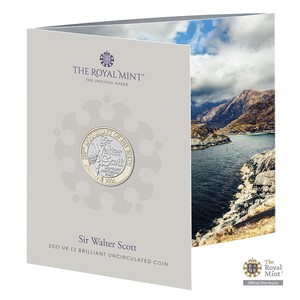 Pamětní mince vyražená z obecných kovů je uložena do speciálního balení, které slovem a obrazem vypráví příběh Waltera Scotta (v anglickém jazyce).