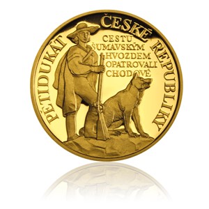 Starodávné české pověsti provázejí každého Čecha již od školních let. Pověsti, mýty a legendy nejsou historicky doložitelné, ale v zápisech lidových vyprávění a bájí kronikáři od Kosmase a Dalimila po Václava Hájka z Libočan se dochovaly dodnes, stejně jako v literárním zpracování Aloise Jiráska ve Starých pověstech českých. Představují nejstarší období českých dějin, období někde mezi 6. až 10. stoletím, až po knížete Bořivoje, prvního historicky doložitelného Přemyslovce. V raném středověku byly hranice Českého království chráněny na jihu horami a neproniknutelnými lesy. Důležité zemské stezky, kterými se dalo vstoupit do země, chránili kvůli bezpečnosti a pro vybírání cel stráže. Báje o strážcích zemských hranic pak daly pravděpodobně vzniknout pověstem o Chodech a Psohlavcích v pozdějších dobách. Na averzní straně je zobrazena postava Choda se psem, v kompozici posunuta vlevo, aby zde bylo možné umístit úryvek „Cestu Šumavským hvozdem opatrovali Chodové“ a částečný opis textu Pětidukát České republiky. Reverzní strany celé dukátové řady jsou složeny z motivů pěticípých hvězd a trojice zemských znaků, ale pro každý dukát v jiném variantním řešení. Trojice českých zemských znaků a kompozice pěticípých hvězd připomíná začlenění České republiky do rodiny evropských národů. Na pětidukátu je trojice zemských znaků kompozičně rozložena po celé ploše medaile, v opisu doplněna hvězdami a letopočtem 2011. Limitovaná emise 200 kusů.