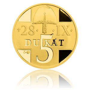 Motiv zlatého dukátu je věnován největšímu symbolu české státnosti a patronovi Čech a Moravy – svatému Václavovi. Ten byl svému národu skutečnou oporou a proslul jako výjimečný panovník obdařený mnoha ctnostmi, mezi nimiž vynikala jeho mravnost a zbožnost. K té ho vedla jeho babička, svatá Ludmila, která Václava vychovávala. Po porážce, již utrpěl od saského krále Jindřicha Ptáčníka, se kníže významně zasadil o zachování suverenity českého státu. Byl také zakladatelem chrámu sv. Víta na Pražském hradě, který se stal hlavním kostelem knížectví. Smrt zastihla Václava v raném věku a nečekaně přišla ze strany jeho vlastního bratra, kterému nebyla po chuti Václavova mírumilovná politika. Teprve dvacetiletý Boleslav zosnoval bratrovraždu, kterou uskutečnil dne 28. září ve svém sídle, Staré Boleslavi. Ujal se vlády, svou vinu však dlouho neunesl a nechal ostatky svého bratra převézt do chrámu sv. Víta. Tím také položil základ svatováclavskému kultu, jenž byl posílen posmrtnými zázraky. Václav začal uctíván pro svou zbožnost, kterou za života projevoval mimo jiné pěstováním vína a obilí pro svaté přijímání, péčí o chudé, otroky a vězně i budováním církevních staveb. Později se svatý Václav stal symbolem českých zemí.