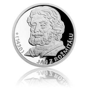 LEV Z ROŽMITÁLU (1425–1482) byl charakteristickým pozdně středověkým rytířem – reverzní strana mince ho vyobrazuje v přilbici se zdviženým hledím. Aktivně se účastnil turnajů, kde leckdy bojoval i bez brnění, byl majetný a společensky i diplomaticky obratný. Stal se proto vůdcem výpravy Jiřího z Poděbrad – krále a manžela své sestry – do západní Evropy, kde jako vůbec první Čech získal Řád zlatého rouna, který na minci zdobí jeho krk.