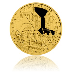 Porobený, avšak stále hrdý národ, který po léta snášel útrapy nacistické nadvlády, nehodlal dopustit, aby se z naší vlasti a jejího hlavního města stala poslední bašta německého odporu. Všem domácím hrdinům květnového povstání, kteří před 70 lety vyrazili do ulic stavět barikády a hájit je s puškou v ruce je věnována zlatá mince, která sérii České mincovny uzavírá.