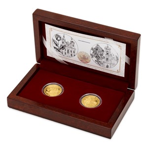 Dvojice mincí je spolu s ilustrovaným certifikátem pravosti uložena do luxusní dřevěné etue.
