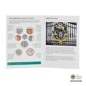 Sada obsahuje celkem osm britských oběžných mincí. Nejzajímavějším kouskem je jednolibrová ražba, která je díky svým pokročilým prvkům ochrany proti padělání považována za nejbezpečnější minci světa. Vyniká například dvanáctihranným tvarem, přičemž hrany jsou střídavě vroubkované a po jejich obvodu se mikroskopicky opakuje rok emise s nominální hodnotou. Mince je opatřena také holografickým obrazcem, který je čitelný pouze při pohledu z daného úhlu. Dalším unikem kolekce je pak šestice mincí s nominálními hodnotami od 1 do 50 pencí, které, když se správně srovnají, tvoří nevšední numismatickou skládačku. Rovněž není bez zajímavosti, že padesátipence slaví v roce 2019 padesát let existence.