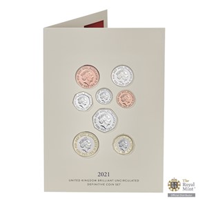 Kombinované reliéfy reverzních stran šesti pencí (50, 20, 10, 5, 2 a 1 p) odhalují majestátní státní znak. Jednolibrová mince nese na reverzu anglickou růži, velšský pór, skotský bodlák a severoirský jetel – rostlinné motivy symbolizující čtyři národy Spojeného království. Reverzu dvoulibrové mince pak vévodí zosobnění Britannie s přilbou, štítem a trojzubcem. Averzní strany ražeb patří portrétu královny Alžběty II. z profilu, roku emise 2021 a zkrácenému latinskému nápisu, který lze přeložit jako „Alžběta II., z Boží milosti královna, ochránkyně víry“.