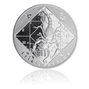 Štír, latinsky Scorpio, 24. října až 22. listopadu. Vodní znamení s vedoucí planetou Mars a Pluto. Šťastným kovem je železo, rostlinou vřes a dnem čtvrtek. Společná strana všech medailí v sérii znamení zvěrokruhu nese motiv hvězdné oblohy s jednotlivými souhvězdími uspořádanými tak, jak jdou na obloze za sebou, a tudíž i v průběhu roku. Na straně s jednotlivými znameními umístěnými v leštěném kosočtverci používaném astrology je umístěno nejen znamení, ale i jeho značka, český a latinský nápis. Hvězdičky svým rozestavením odpovídají příslušnému souhvězdí na obloze.