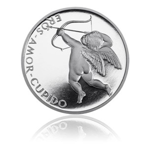 Amor či Erós či Cupido, syn boha války Area a bohyně lásky a krásy Afrodity. Ztvárnění medaile je motivováno antickými bájemi. Na averzní straně je vyobrazen Erós bůh lásky. Na reverzní straně je kompozice ženské postavy s motýlími křídly, která má znázorňovat Psyché - ženu krásnější než Afrodita, která si podle pověsti po útrapách nakonec Eróse vzala a Zeus jí dal vypít nápoj nesmrtelnosti.