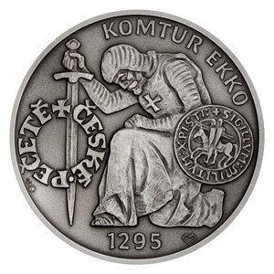 Pátá emise cyklu České pečetě otevírá kapitolu připomínající představitele katolické církve, jež byla ve středověku na vrcholu moci. Stříbrná medaile zkrášlená patinou je věnována komturovi templářského řádu Ekkovi.