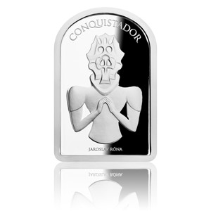Šestá stříbrná medaile z cyklu České mincovny nazvaného Umění pro Václava Havla je inspirována dílem Jaroslava Róny. Jeho Conquistador vznikl po Sametové revoluci, kdy se sochař a malíř mohl vypravit na cestu do exotických zemí.