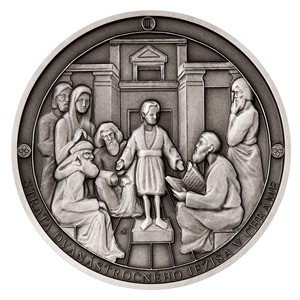 Sedmá stříbrná medaile České mincovny ze slovenského cyklu, který zve k rozjímání o událostech, jimiž bylo poznamenáno neposkvrněné srdce Panny Marie Sedmibolestné, připomíná Ježíšův pohřeb.