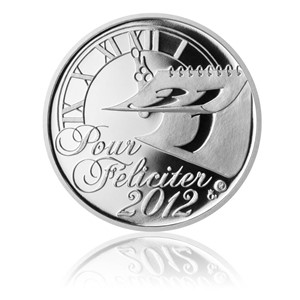 Ze zajímavostí spojených s českými novoročenkami upoutá, že první historicky doložená novoročenka z roku 1606 měla německý nápis a byla ve tvaru mince. Francouzské Pro štěstí, které ani Francouzi nepoužívají, proniklo do českých novoročenek pravděpodobně v 17. a 18. století, kdy francouzština patřila k výbavě vyšších společenských kruhů. K hlavním šiřitelům péefek patřili a patří výtvarní umělci. Tuto novoročenku vytvořil výtvarník Luboš Charvát. Na averzní straně medaile je použit ciferník od hodin a kalendář, jakožto pomůcky pro měření času. Kalendář je zachycen ve fázi otáčení listu posledního dne v roce. Pod ním už na nás vzhlíží první den v roce novém. Ručičky hodin blížící se k půlnoci symbolizují právě ten znehybnělý moment, kdy staré končí a nové začíná. Vše je podtrženo francouzským nápisem Pour Féliciter - pro štěstí, a aktuálním rokem. PF 2012 ve tvaru mince darovaná blízkým či přátelům je hezkým vyjádřením přání všeho dobrého do nového roku. Na reverzní straně jsou napsána konkrétní přání formou básničky, uspořádané do tvaru spirály. Ciferník znázorňuje, že přání všeho dobrého je časově neomezené. Náklad není limitován.