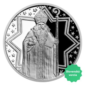 Stříbrná medaile, která je součástí volného dárkového cyklu České mincovny s vánočními motivy, připomíná příběh svatého Mikuláše.