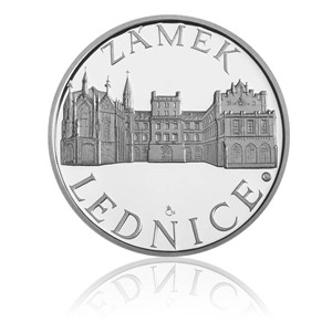 Unikátní zámek, jehož velkolepost uznává celý svět. Od prosince 1996 je zámek Lednice jakožto součást Lednicko-valtického areálu zapsán na Seznamu světového dědictví UNESCO. Koncem 13. století se majitelem Lednice a blízkého Mikulova stal rod Lichtenštejnů, který postupně získal rozsáhlé pozemky na obou stranách moravsko-rakouské hranice. Lichtenštejnové se po bitvě na Bílé hoře stali nejbohatším rodem na Moravě a jejich majetek jim umožňoval rozsáhlé přestavby zámku a zahrad. Na sklonku 17. století byly staré stavby strženy a bylo vybudováno barokní sídlo s rozlehlou architektonicky řešenou zahradou a monumentální jízdárnou podle návrhu Jana Bernarda Fischera z Erlachu. Dnešní vzhled zámku pochází z let 1846 - 1858, kdy kníže Alois II. z Lichtensteina usoudil, že Vídeň je pro pořádání letních slavností nevhodná a nechal Lednici přebudovat na reprezentační letní sídlo v duchu anglické gotiky. Pro pořádání velkolepých setkání evropské šlechty sloužily reprezentační sály v přízemí s vyřezávanými stropy, dřevěným obložením stěn a vybraným mobiliářem, jaké nemají v Evropě obdoby. Na averzní straně medaile znázornil výtvarník Vojtěch Dostál nejznámější pohled na zámek, který obdivují turisté z celého světa. Reliéf zámku je doplněn opisem ZÁMEK LEDNICE. Na reverzní stranu umístil erb rodu Lichtenštejnů, jednoho z nejstarších rodů v Evropě, kterému panství patřilo bezmála 700 let. Centrální kompozici znaku doplňuje opis LICHTENŠTEJNOVÉ. Limitovaný náklad 1000 kusů.