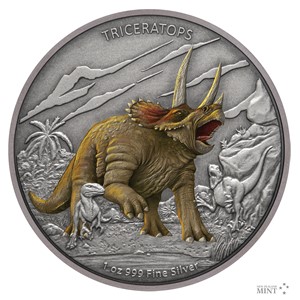 První stříbrná mince ze sběratelského cyklu věnovaného dinosaurům je věnována triceratopsovi.