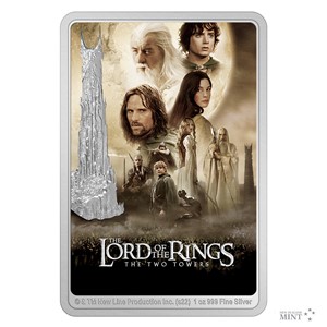 Stříbrná mince 1 Oz 2 NZD Pán prstenů 2022 Helmův žleb patina