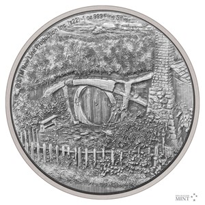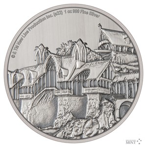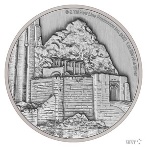 Další stříbrná mince z cyklu inspirovaného filmovou trilogií Pán prstenů připomíná moc Hory osudu.