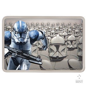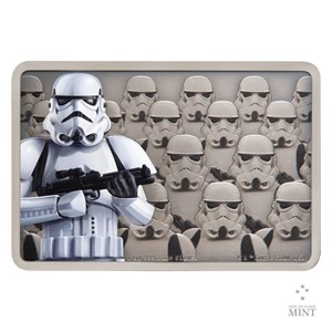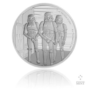 Třetí stříbrná mince z cyklu Novozélandské mincovny, který představuje bojovníky z filmové ságy Star Wars, je věnována deathtrooperům.