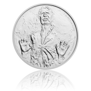 Averz numismatické lahůdky z ryzího stříbra zaznamenává slavný výjev z Epizody V z roku 1980, kdy byl Han Solo zamražen do karbonitu. Reverz je pak tvořen portrétem britské královny Alžběty II. a nápisy ELIZABETH II., NIUE, 25 DOLLARS a 2016, tedy rokem emise. Mince je uložena ve vkusné etuji zdobené znakem Aliance rebelů, který fanoušci znají pod názvem Starbird a je dodávána v krabičce s logem STAR WARS, jež zrychlí tep každému obdivovateli prvotřídního sci-fi. Nenechte si ujít exkluzivní ražbu z dílny Novozélandské mincovny a dopřejte své sbírce svěží přírůstek s atraktivním investičním potenciálem.