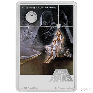 Další stříbrná mince z cyklu s motivy filmových plakátů Star Wars je věnovaná epizodě s podtitulem Nová naděje.