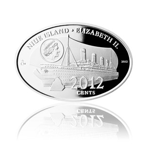 Royal Mail Steamer Titanic byl zaoceánský parník, zkonstruovaný pro osobní dopravu mezi Anglií a Spojenými státy. Na svoji první plavbu se vydal s 1300 pasažéry a 900 členy posádky na palubě. Luxusní loď společnosti White Star Line, pokládaná za nepotopitelnou, však narazila během své první plavby na ledovec a v noci ze 14. na 15. dubna roku 1912 se potopila. Zachránilo se pouze 700 lidí. Stříbrná mince ražená v novozélandské licenci má na averzní straně vyobrazen Titanik plující po moři, z něhož vystupují ledové kry. Kompozici doplňuje portrét a jméno královny Alžběty, nominál 2012 centů a název země Nový Zéland. Na reverzní straně je umístěna kompozice složená z předmětů vylovených z moře – kompasu, lodního lístku a zvonu. Letopočty 1912 a 2012 a dvoujazyčný opis po obvodu mince vyjadřují 100. výročí zkázy Titaniku. Není bez zajímavosti, že na území Nového Zélandu se jedná o platnou nominální minci.