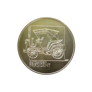 Stříbrná mince 200 Kč 1997 100. výr. výroby automobilu Präsident stand