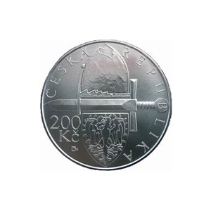 Stříbrná mince 200 Kč 2006 700 let od vymření Přemyslovců po meči Václavem III. stand