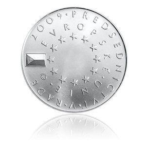 Stříbrná mince 200 Kč 2009 Předsednictví ČR v Radě Evropské unie stand