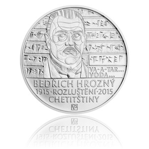 Stříbrná mince 200 Kč 2015 Bedřich Hrozný rozluštil Chetitštinu stand