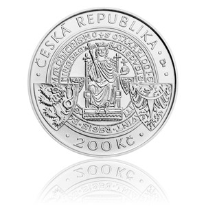 Stříbrná mince 200 Kč 2015 Založení Českých Budějovic jako královského města stand