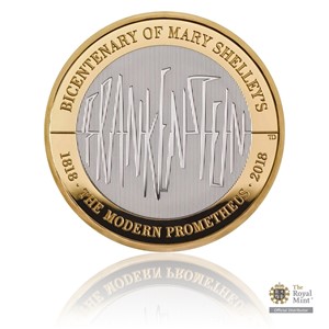 V roce 2018 uplynulo 200 let od vydání románu se světoznámým názvem Frankenstein (a méně známým podtitulem „neboli moderní Prométheus“). Při této příležitosti vydala anglická mincovna The Royal Mint stříbrnou pamětní minci.