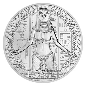 Pátou starobylou bohyní, které je zasvěcena stříbrná mince České mincovny, je egyptská Bastet.