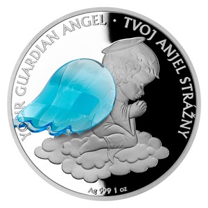 Unikátní stříbrné mince s broušeným českým křišťálem z řady „Crystal Coin“ jsou výsledkem spojení tradičních jabloneckých řemesel – medailérství České mincovny a sklářství společnosti Preciosa –, jaké nemá obdoby na celém světě. Druhá „křišťálová mince“ se slovenským motivem nese strážného anděla, který v dlaních drží srdce.