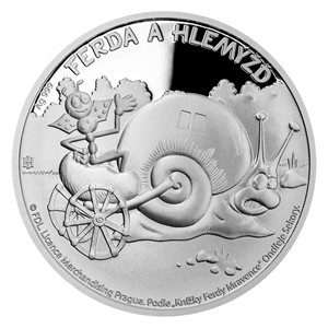 Poslední stříbrná mince České mincovny z pohádkové sběratelské minisérie připomíná úplně první dobrodružství Ferdy Mravence. Hmyzí hrdina se při něm pustil do křížku s panem Hlemýžděm.