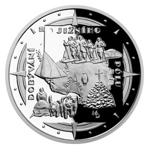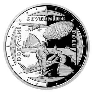 Druhá stříbrná mince České mincovny z cyklu s názvem Polárníci vzdává hold hrdinům, kteří dobyli jižní pól.