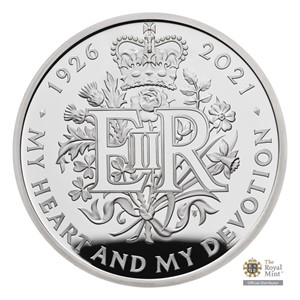 V roce 2021 oslavila královna Alžběta II. pětadevadesáté narozeniny. Při této příležitosti jí vzdává hold stříbrná mince britské mincovny The Royal Mint.
