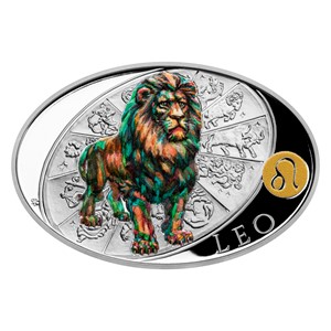 Stříbrná mince České mincovny z dárkové série s motivy 12 znamení zvěrokruhu se stane nejen krásným, ale také hodnotným talismanem pro každého, kdo se narodil ve znamení Lva.