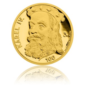 Stříbrná pozlacená medaile s motivem 100 Kč bankovky - Karel IV. proof