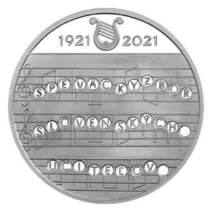Stříbrná mince s nominální hodnotou 10 euro byla vyražena v kvalitě proof u příležitosti 100. výročí vzniku pěveckého sboru slovenských učitelů.