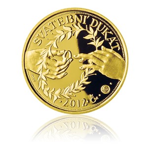 Obdarovávat snoubence a novomanžele patří k mnoha svatebním zvykům a rituálům. Příbuzní, přátelé a známí často váhají, jaký dárek zvolit ke svatbě, na kterou byli pozváni. Starý zvyk, darovat snoubencům něco praktického do domácnosti, už se pomalu přežívá. Často se totiž stávalo, že novomanželům se sešlo mnoho darů nechtěných. A tady přichází Česká mincovna s ideálním řešením. Zlatý umělecky ztvárněný dukát je dárek trvalé hodnoty a vždy ceněný. Akademická sochařka Majka Wichnerová zvolila na averzní stranu medaile motiv navlékání prstenu a podání ruky jako symbolu spojení dvou životů. Obě strany medaile zdobí snítky myrty, která nechybí na žádné svatbě. Reverzní stranu zdobí trojice stylizovaných heraldických zvířat, jež je doplněna snítkou myrty a ve spodní části pak snubními prsteny, jako slibem lásky a věrnosti. Motivy na okraji uzavírá perlovec neboli astragal, oblíbený ornament vzniklý v antice a běžný u nás od renesance, připomínající šňůru perel.