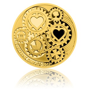 Takový je i nový zlatý dukát České mincovny pro rok 2017. Autorem jeho averzní strany je nadaný medailér Roman Shamilyan – věnoval ji vtipné symbolice hodinového strojku, který evokuje spolehlivě šlapající manželství. Jednotlivá ozubená kolečka skrývají srdce a čtyřlístek – symboly lásky a štěstí – a také dům, strom a kočárek odkazující na staré rčení „postav dům, zasaď strom a zploď syna“. Reverzní strana patří pergamenovému svitku, na který bude vyryto vaše osobní věnování či jiný text dle vašeho přání o rozsahu 3 řádků po 10 znacích včetně mezer.