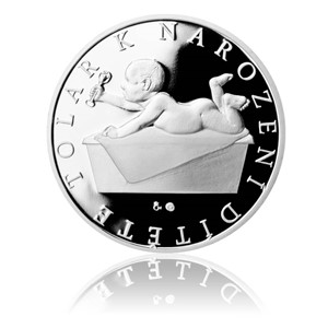 Jáchymovské tolary, ražené v 16. století hrabětem Šlikem v Jáchymově (původně německy Joachimsthalergulden), daly vzniknout slovními přesmyčkami i názvu dnešních dolarů. Tolar se tak stal symbolem nejen mnoha dnešních mincí, ale zejména drahého kovu - stříbra. Dárek k narození dítěte tak v sobě skrývá trvalou hodnotu drahého kovu, a navíc i uměleckou práci výtvarníků a rytců mincovny. Motivy medailí k narození dítěte mincovna pravidelně obměňuje. Na averzní straně stříbrného tolaru 2012 je vyobrazeno dítě, ležící na bříšku na přebalovacím pultu, s napřaženou ručičkou a chrastítkem. Motiv uzavírá opis „Tolar k narození dítěte“. Na reverzní straně je kompozice hraček, doplněná v opise letopočtem „2012“. Náklad není limitován.