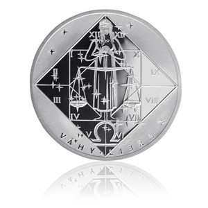 Váhy, latinsky Libra, 23. září až 23. října. Vzdušné znamení s vedoucí planetou Venuše. Šťastným kovem je měď, květinou pomněnka a dnem středa. Společná strana všech medailí v sérii znamení zvěrokruhu nese motiv hvězdné oblohy s jednotlivými souhvězdími uspořádanými tak, jak jdou na obloze za sebou, a tudíž i v průběhu roku. Na straně s jednotlivými znameními umístěnými v leštěném kosočtverci používaném astrology je umístěno nejen znamení, ale i jeho značka, český a latinský nápis. Hvězdičky svým rozestavením odpovídají příslušnému souhvězdí na obloze.